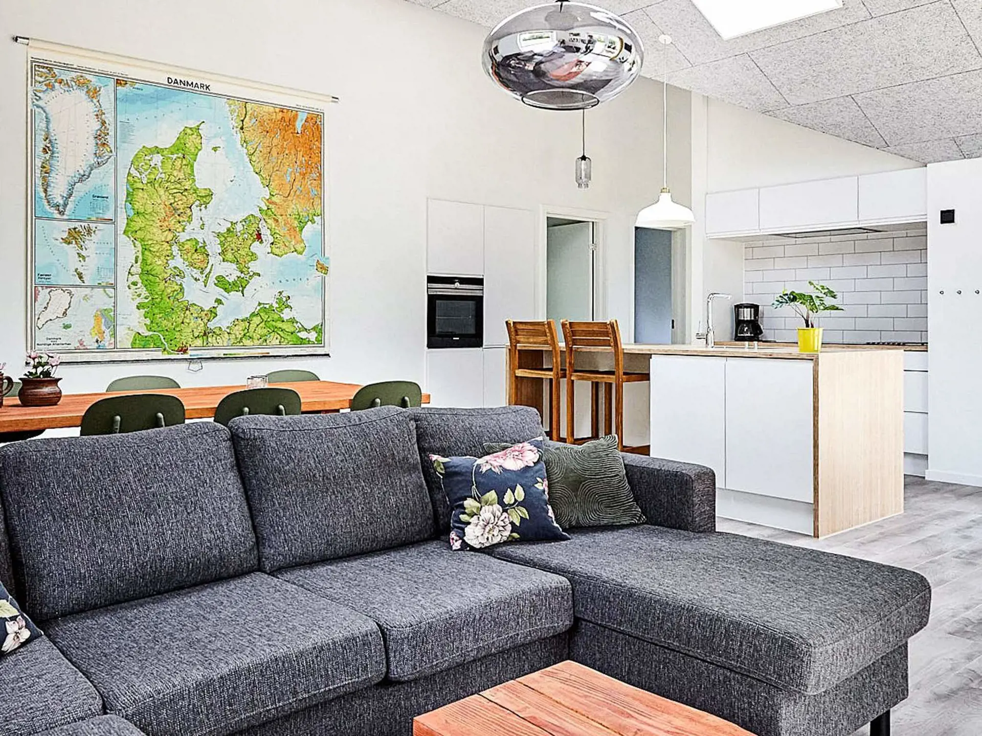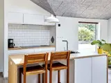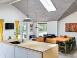 Innen gibt es einen offenen Küchen-/Wohnbereich für das Familienleben, inklusive Ess- und Sitzecke. Das Haus hat zudem vier Schlafzimmer, eines davon mit vier Schlafplätzen. Beide Bäder sind mit einer Dusche, eines zudem mit einem Whirlpool ausgestattet. Fußbodenheizung im ganzen Haus und zudem energieeffiziente Wärmepumpe. TV ohne Senderempfang, WLAN vorhanden, Chromecast o.ä. muss evtl. selbst mitgebracht werden.