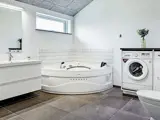Ferienhaus mit Whirlpool zur Erholung im größeren Badezimmer. Liegt unweit der Küste in einer ruhigen Ferienhausgegend bei Kelstrup Strand.