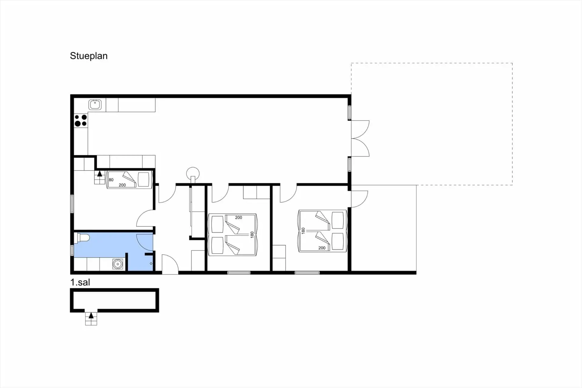 - Anzahl Etagenbetten : 1 80x200