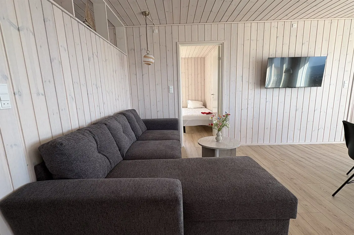 Der Mittelpunkt des Hauses ist die offene Küche, die mit dem Wohnzimmer kombiniert ist und direkten Zugang zur Terrasse bietet. Es gibt zwei Schlafzimmer: In dem einen Schlafzimmer, das mit 2 Betten eingerichtet ist, kannst du den Tag mit einem fantastischen Ausblick angehen lassen. Das andere Schlafzimmer verfügt über ein Etagenbett (90x190 cm, daher besonders für Kinder und Jugendliche geeignet) sowie ein Einzelbett. Das Badezimmer ist mit Duschnische und Fußbodenheizung ausgestattet.