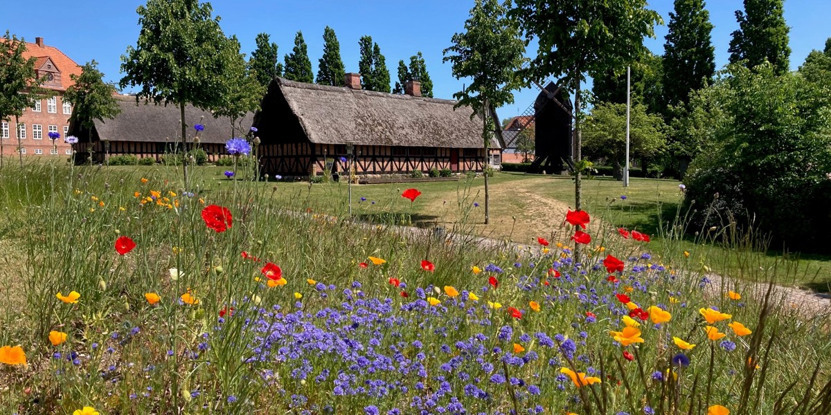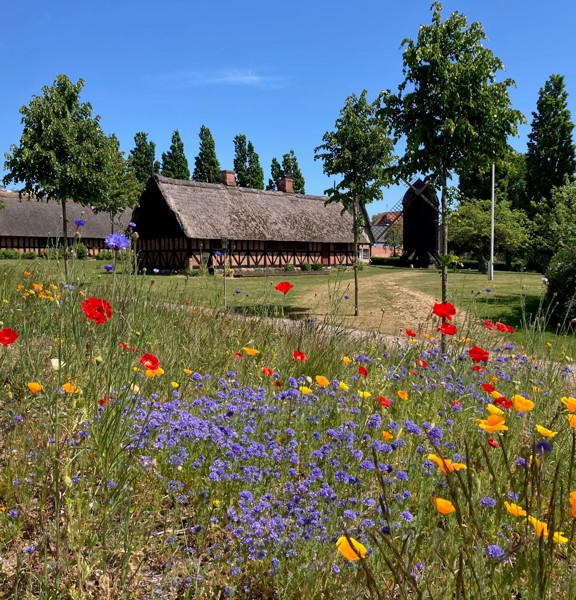 Zur Ausstellung gehört auch ein Freilichtmuseum, in dem jahrhundertealte Häuser stehen. Wie die Menschen früher arbeiteten, zeigen die Schmiede und die Mühle. Die Hinweisschilder enthalten witzige Anekdoten für Kinder, sie sind dreisprachig, Deutsch ist auch dabei. Und es gibt im Freilichtmuseum einen duftenden Kräutergarten – gestaltet wie ein mittelalterlicher Klostergarten, mit mehr als 40 Heilpflanzen und Kräutern.