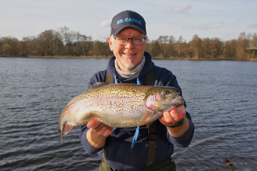 Wenn einem die Herausforderungen an den natürlichen Gewässern doch etwas zu groß erscheinen, man aber unbedingt selbst gefangenen Fisch nach Hause bringen möchte, dann ist das in Dänemark zum Glück auch kein Problem: Fast von jedem Ferienhaus aus liegt der nächste kommerzielle Forellensee (Put-&-Take-See) nur wenige Fahrminuten entfernt. Passend zur Jahreszeit kann man’s nun gemütlich angehen: Die Fische sind träger als im restlichen Jahr und reagieren meistens am besten auf stationär und grundnah angebotene Naturköder oder spezielle Forellenteige. Oder man schleppt ultralangsam aromatisierte Gummiköder dicht über Grund.