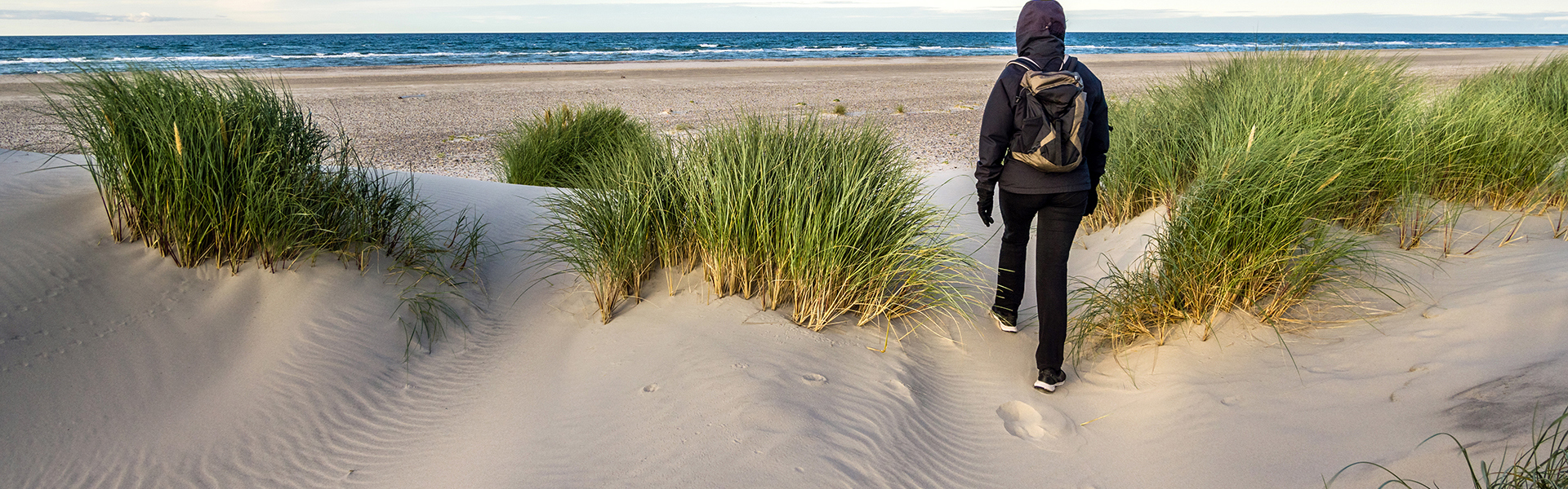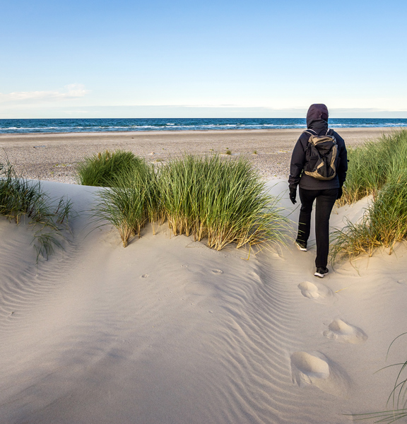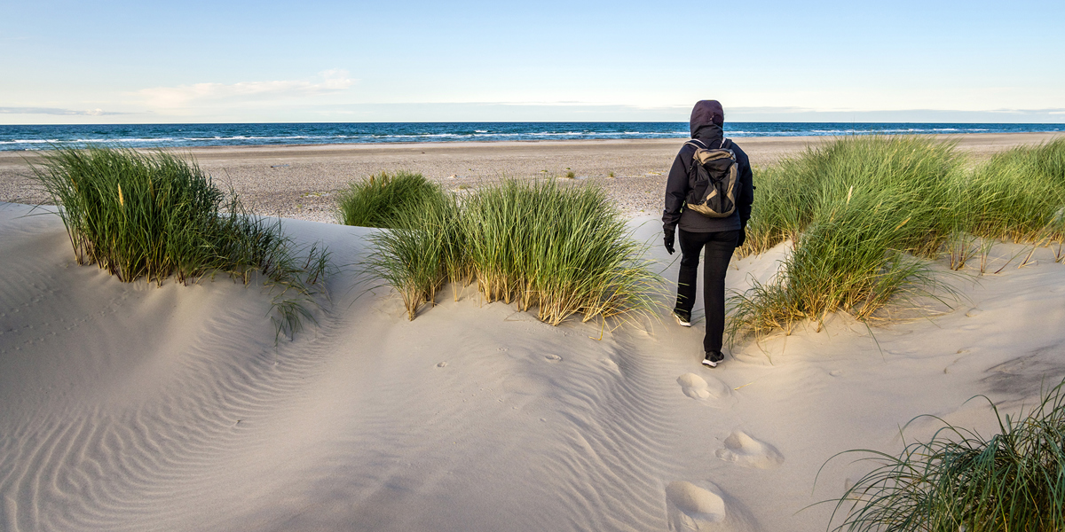 Auf rund 15 Kilometern führt diese spannende Route durch die Dünenlandschaft Westjütlands. Abwechslungsreiche Vegetation, die stürmische Nordsee und ein kleiner Waldsee sind die Höhepunkte dieser urdänischen Wanderung.